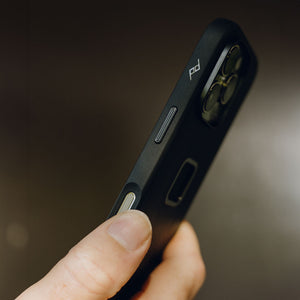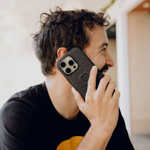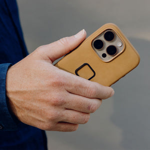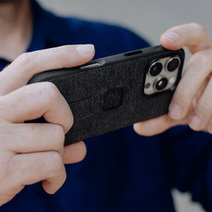 Los colores Tan y Black de las carcasas para iPhone de Peak Design están fabricados con cuero vegano Clarino™, un material resistente al agua y al desgaste, que ofrece el aspecto y la sensación del cuero premium, mientras que es sostenible.