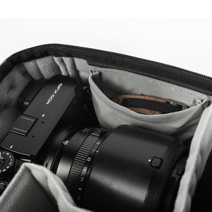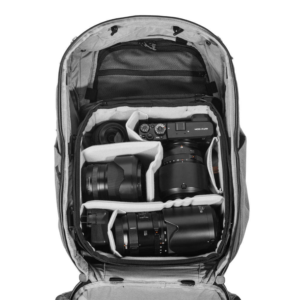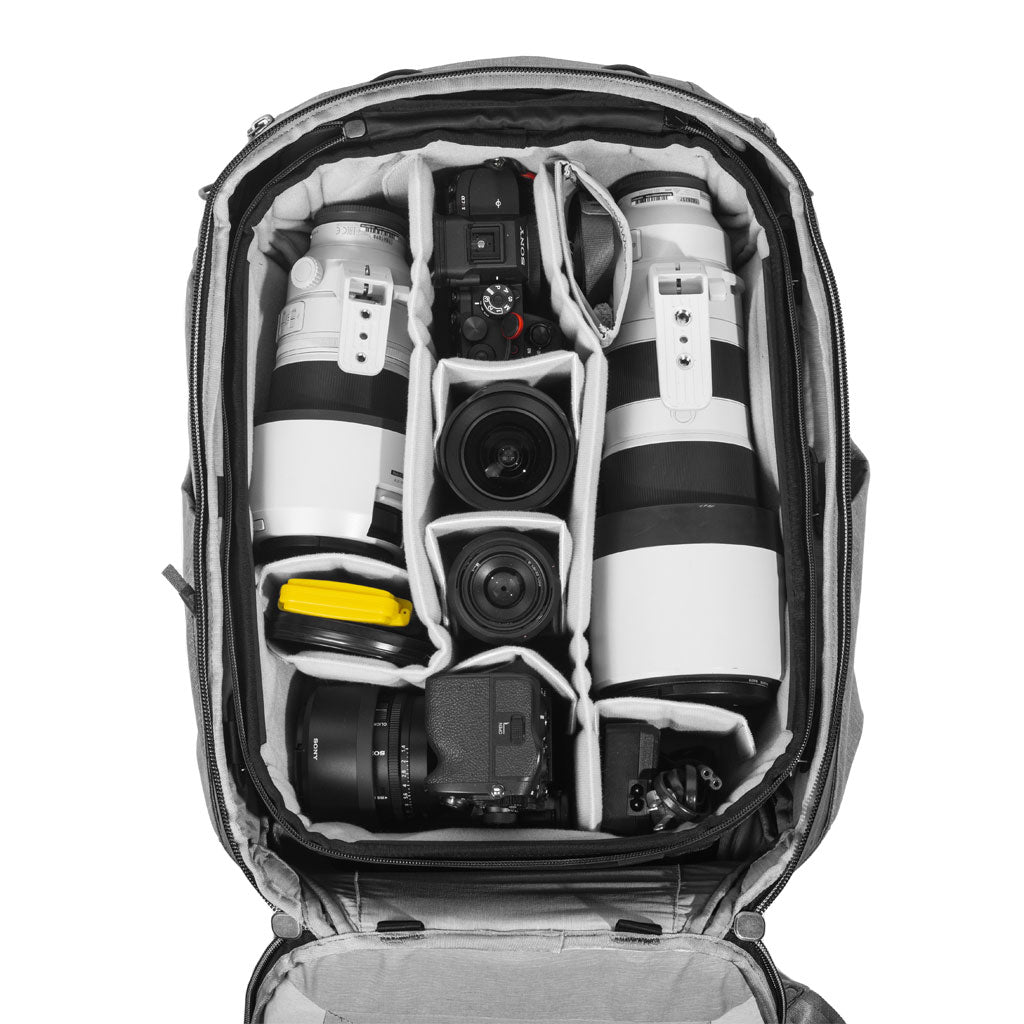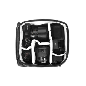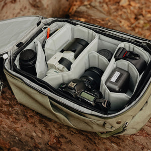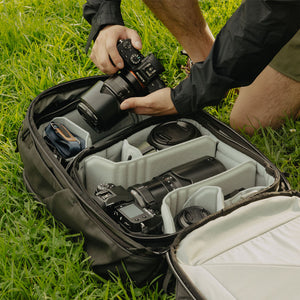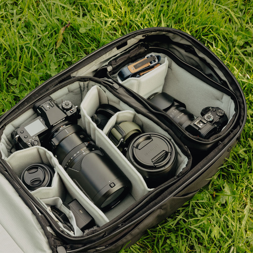 Diseñados para encajar perfectamente en cualquier bolso de viaje Peak Design o en mochilas de otras marcas, los cubos de empaque ofrecen una organización y protección personalizadas para una amplia variedad de equipos creativos, desde kits compactos de cámaras mirrorless hasta configuraciones completas de video, fotografía y drones.