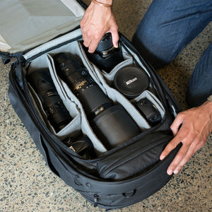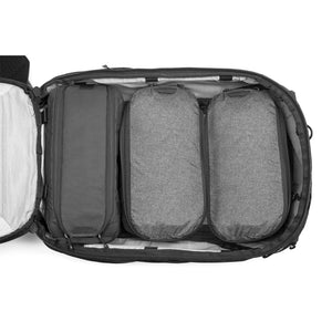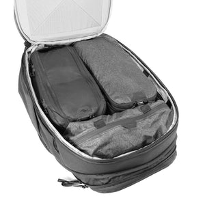 Estas mochilas son totalmente compatibles con cubos de empaque, cubos para cámara y bolsos Peak Design (se venden por separado), lo que permite una organización eficiente del equipaje. Esto facilita llevar ropa, equipo fotográfico y otros accesorios de manera ordenada y accesible, ideal para quienes prefieren viajar con un solo equipaje.