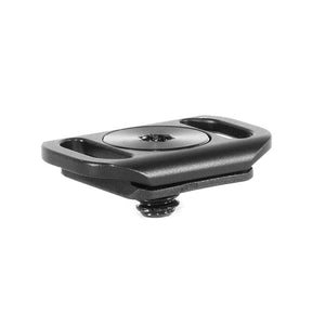 Fabricado en aluminio anodizado ultrarresistente, este soporte se fija a la rosca de trípode estándar (1/4”-20) ubicada en la parte inferior de la cámara. Es totalmente compatible con el sistema Anchor Link y todas las correas de Peak Design.