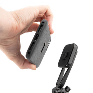 Desata todo el potencial fotográfico y cinematográfico de tu teléfono con este soporte versátil. Diseñado para adaptarse a trípodes, monturas GoPro, monturas de 1/4”-20 y el Clip para Cámara Peak Design Capture, este soporte te permite dejar la DSLR en casa y montar tu teléfono en cualquier cabezal de trípode tipo Arca para capturar timelapses y exposiciones largas.